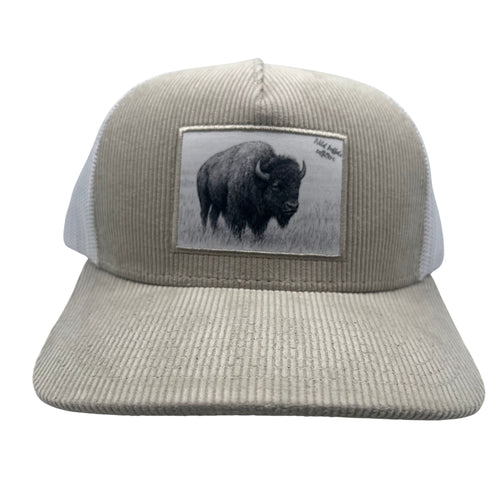 Wild Buffalo Outfitters Khaki Corduroy Trucker Hat with Buffalo Patch